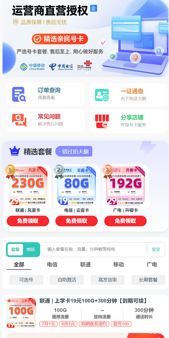 ⚠️ 四个平台都是正规发卡中心,发的卡都是三大运营商正常的卡,跟在营业厅办理的是一样的,不过是营业厅为了拉业务合作出的很多优惠套餐!大家可以放心办理!
