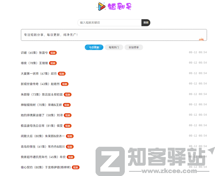 短剧号涵盖了多个热门短剧系列,无论是情感类、悬疑类还是喜剧类,这里都能找到你心仪的作品。而且,该网站每天都会更新新的内容,确保用户总能接触到最新的短剧资源